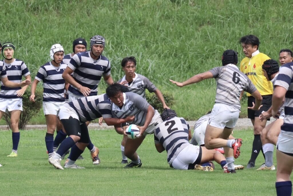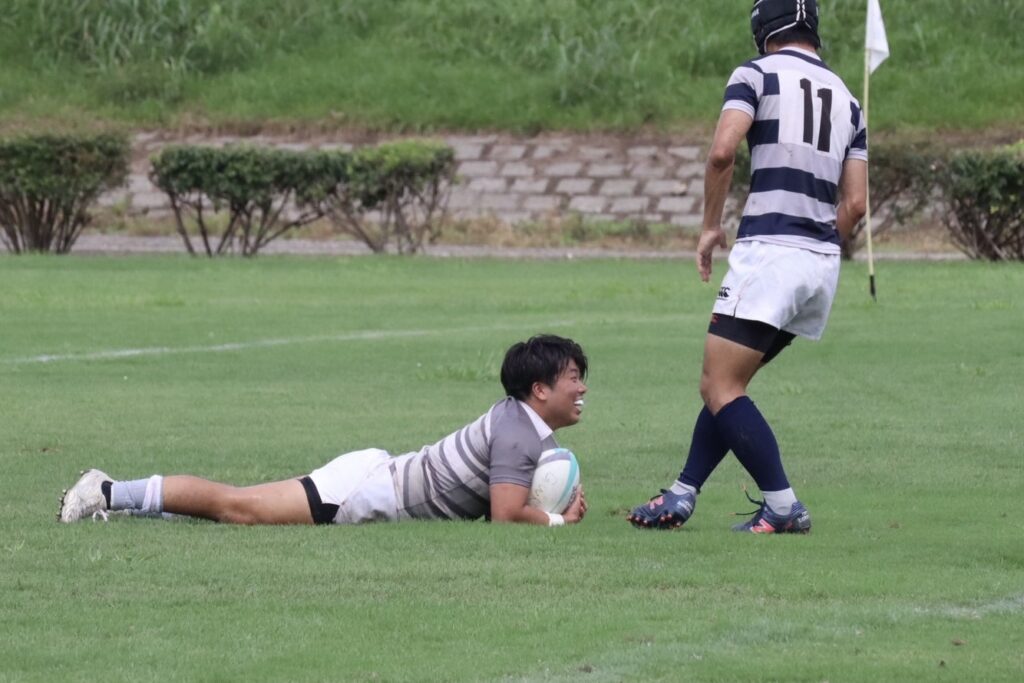 立ち上がりから集中力を高めて臨み、幸先よく先制トライを挙げることができました。しかしその後は相手にトライを許し、さらに自分たちのミスやペナルティが重なって苦しい時間帯が続きました。2本目のトライを決めて以降は徐々にリズムを取り戻し、自分たちのペースで試合を進めることができました。その後は失点を防ぎ、最後までリードを守り抜いて勝利を収めました。