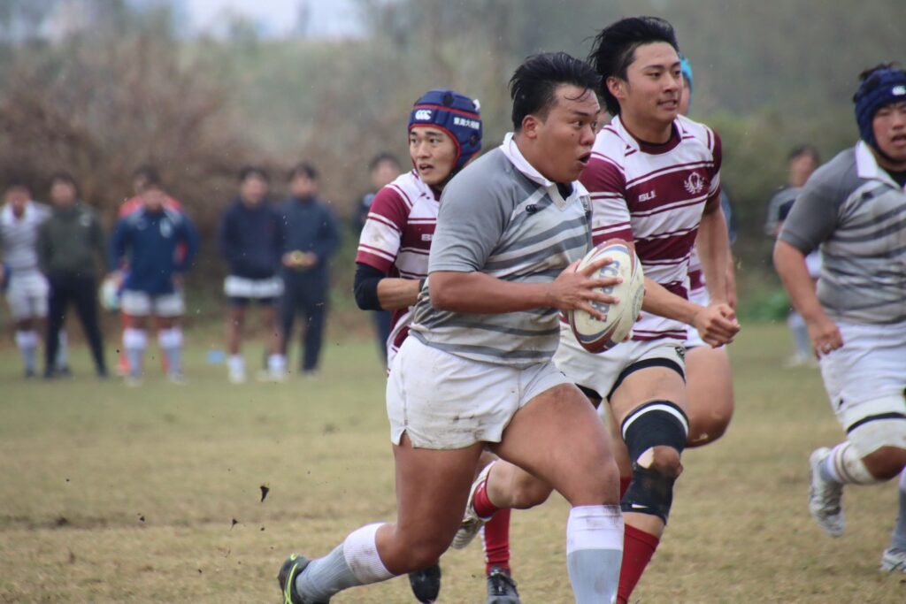 序盤は相手にハイパントを多用され、なかなか思うようにエリアを前に進められず、トライ、ペナルティゴールを与えてしまいました。その後はスクラム、モールなどセットプレーでの地力を見せて要所で得点を重ねました。