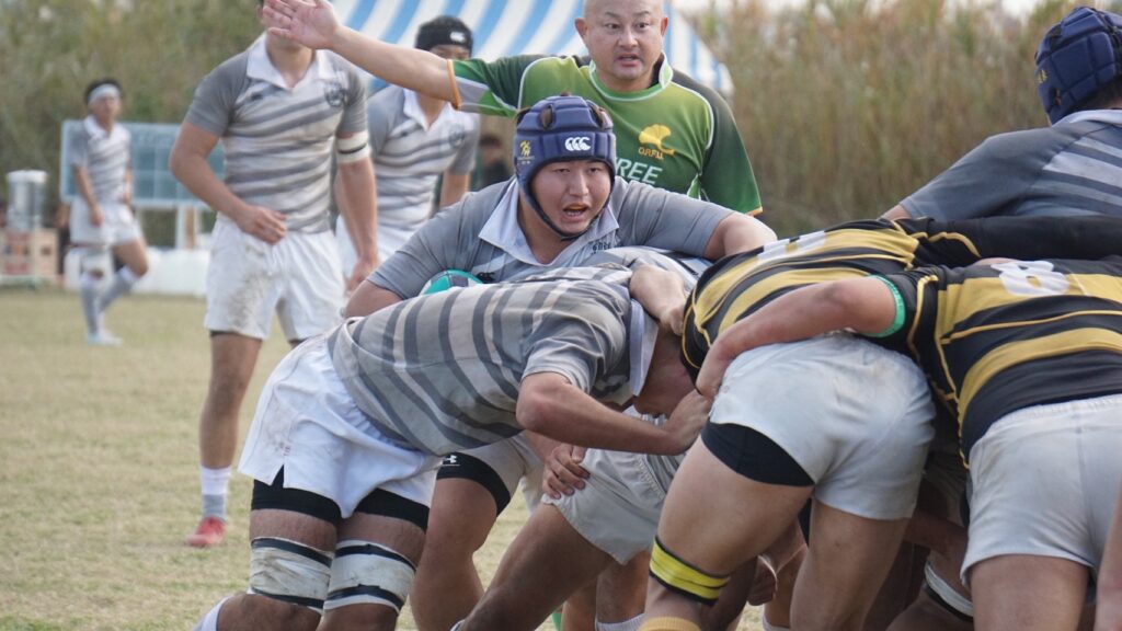後半は大幅なメンバー交代で挑みましたが立ち上がりでBYBさんに先制トライを許し、3本連続で得点され、苦しい時間が続きました。それでもクラブ選手権初出場のメンバーを含め、一人一人が落ち着いて役割を果たすことで再び主導権を取り返し、勝利につなげることができました。