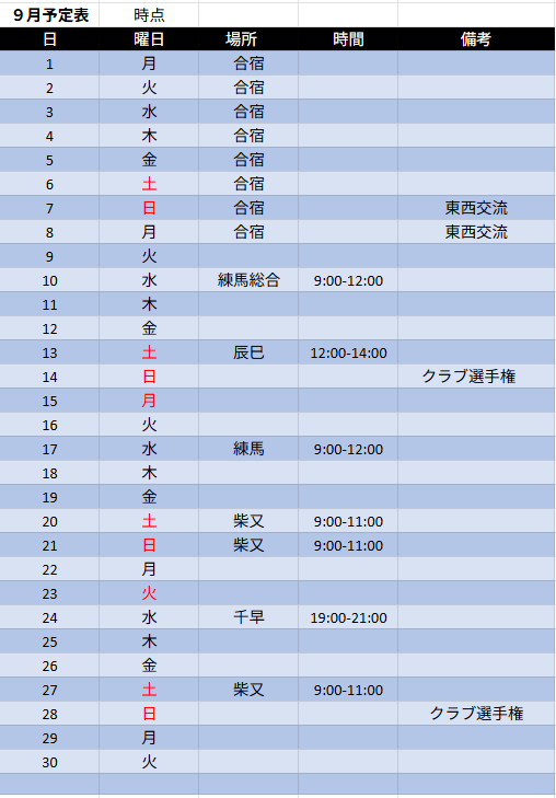 9月14日(日)11:00 kick off VS慶應JSKS @荒川緑地